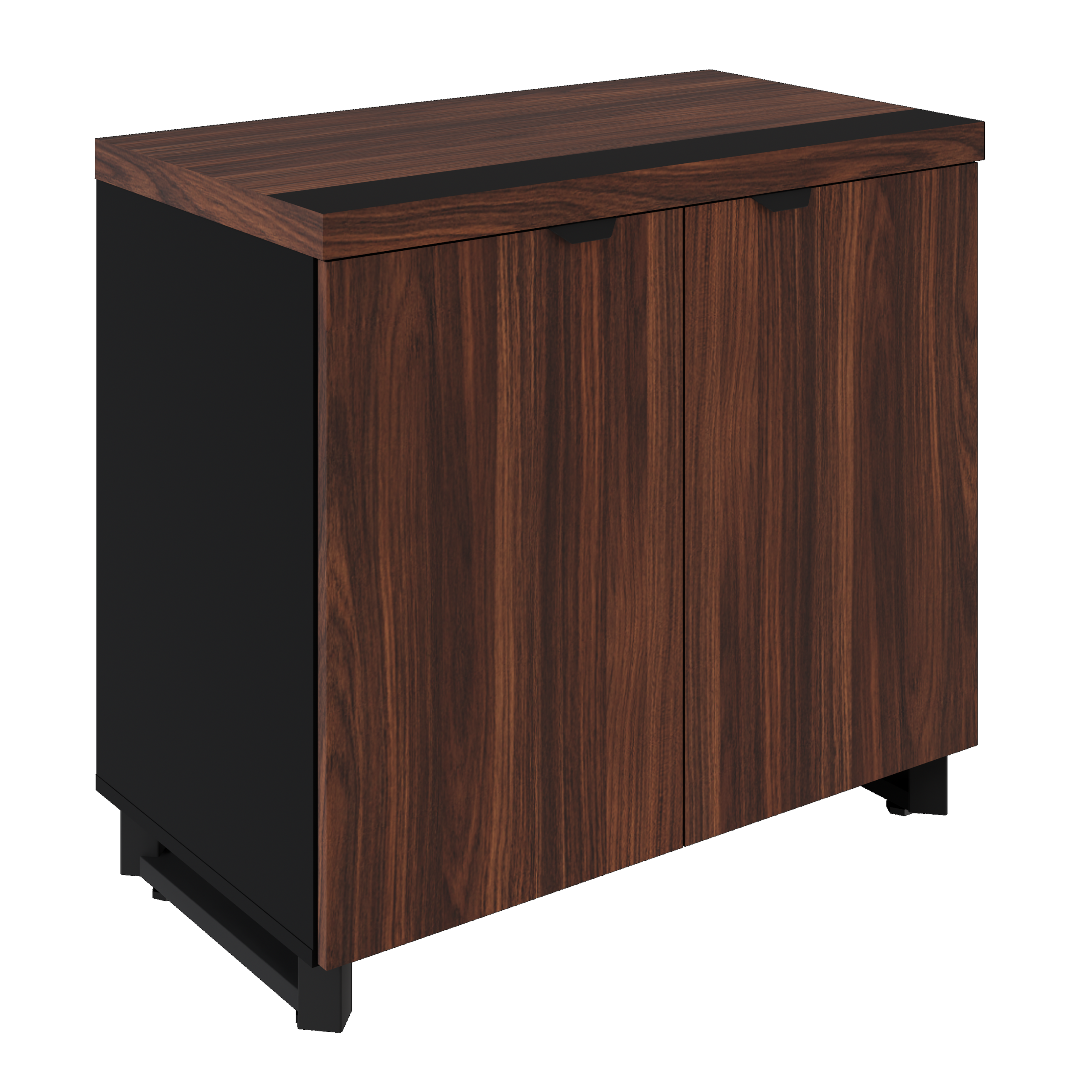 Tampo confeccionado em chapa de MDP (Médium Density Particleboard), com partículas selecionadas de madeira de reflorestamento, aglutinadas e consolidadas com resina sintética e termo estabilizadas sob pressão, com 40mm de espessura, sendo face superior bicolor em duas chapas superiores de 25mm de espessura colada em uma chapa inferior cor preto de 15mm de espessura, revestido em ambas as faces com filme termo prensado melamínico, com espessura mínima de 0,2mm.