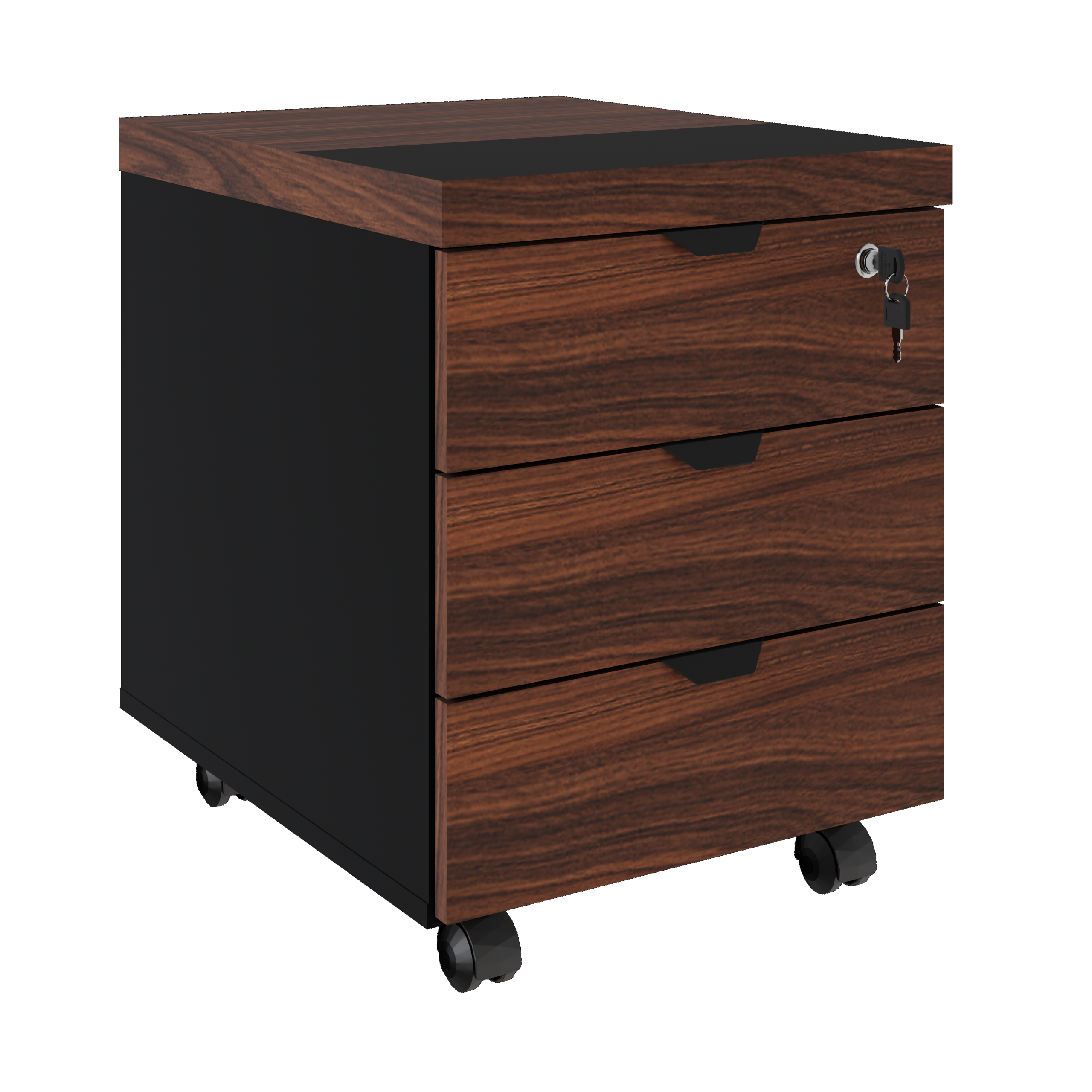 Tampo confeccionado em chapa de MDP (Médium Density Particleboard), com partículas selecionadas de madeira de reflorestamento, aglutinadas e consolidadas com resina sintética e termo estabilizadas sob pressão, com 40mm de espessura, sendo face superior bicolor em duas chapas superiores de 25mm de espessura colada em uma chapa inferior cor preto de 15mm de espessura, revestido em ambas as faces com filme termo prensado melamínico, com espessura mínima de 0,2mm.