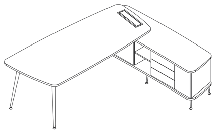 Tampo com formato orgânico, confeccionado em MDP (Medium Density particleboard) de 25 mm de espessura,
