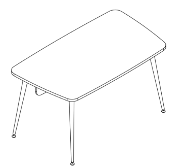 Tampo em formato orgânico, confeccionado em chapa de MDP (Médium Density Particleboard), com partículas selecionadas de madeira de reflorestamento, aglutinadas e consolidadas com resina sintética e termo estabilizadas sob pressão, com 25mm de espessura, revestido em ambas as faces com filme termo prensado melamínico, com espessura mínima de 0,2mm. O contorno do tampo é encabeçado com borda PVC (Polyvinyl chloride) 2mm, colada a quente pelo sistema hotmelt CQ-645PUR que é elaborado a base de poliuretano reativo (PUR) que em contato com a umidade relativa do ar e/ ou dos substratos inicia a sua reticulação, tornando-se um adesivo termo fixo de alta flexibilidade e na cor branco, sendo a mesma com raio de 2 mm.